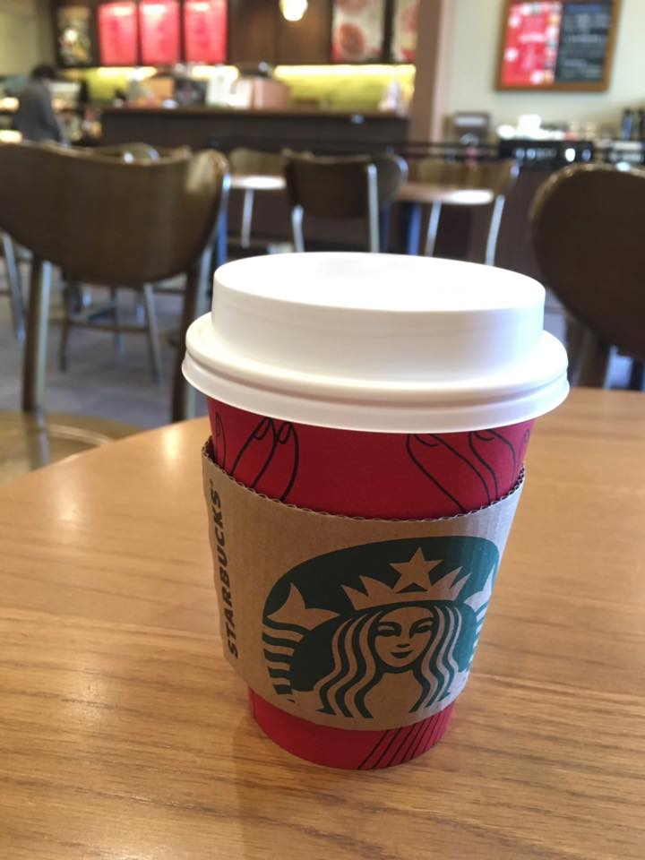 研修前に入ったスタバのカップもクリスマスカラー。